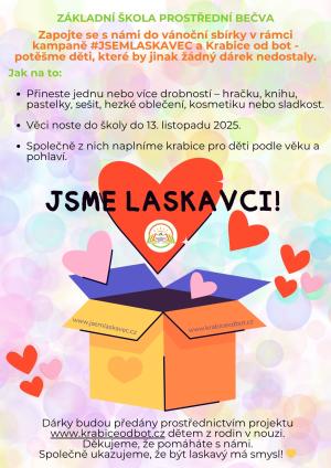 V rámci kampaně #JSEMLASKAVEC pořádáme ve škole sbírku pro projekt Krabice od bot.