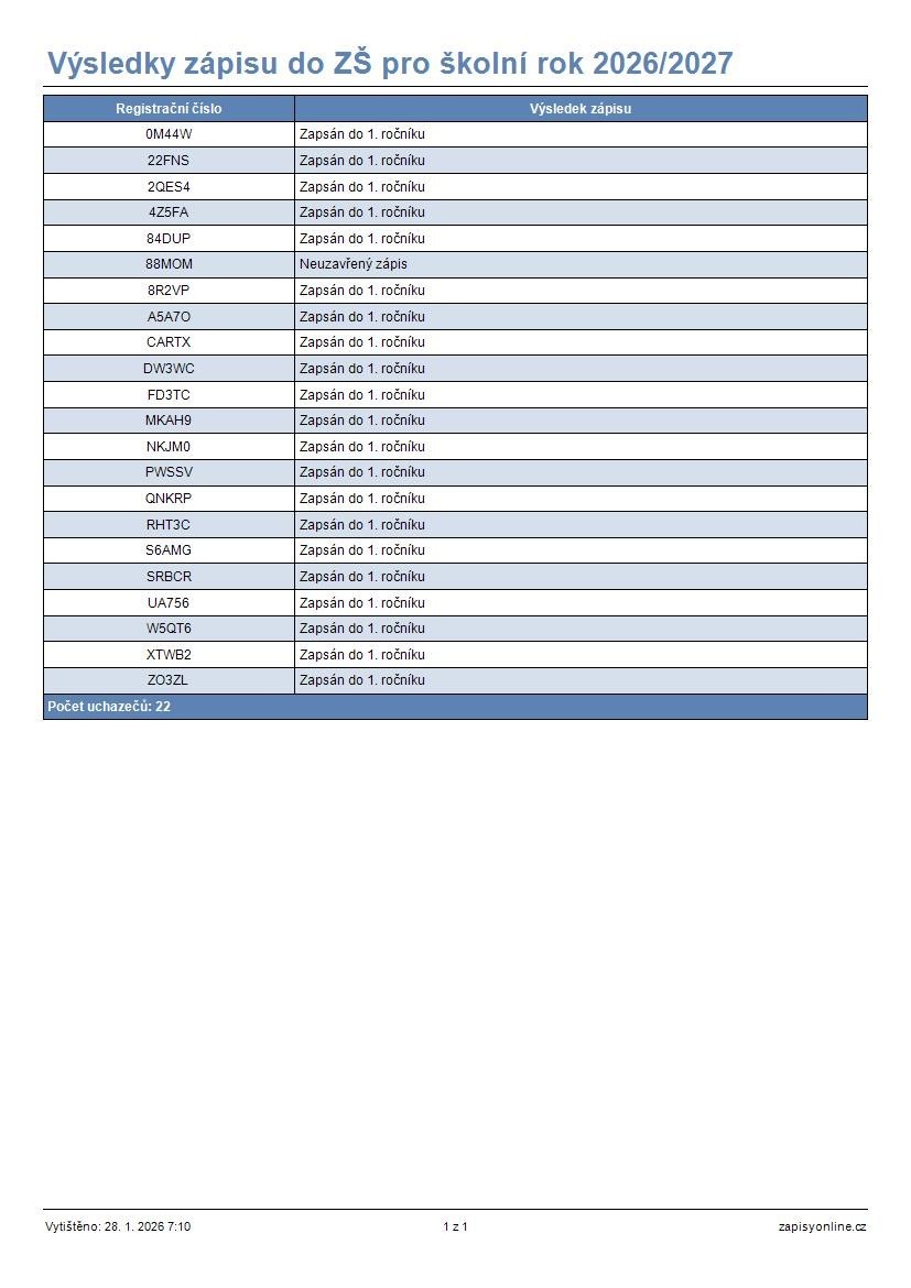 Máme radost, že v září rozšíří naše řady 21 prvňáčků.